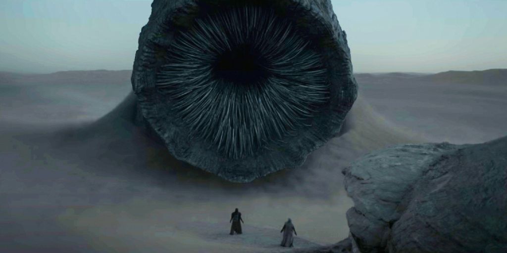 The design of the Guild Highliners is different compared to the 1984 movie and the enormous size of these vehicles is made apparent in a beautiful scene where a large number of small vehicles appear to exit a Highliner over Arrakis which are barely visible, like mosquitos flying close to a large whale. Unfortunately, in this movie we do not get to see the interior of these vehicles or the Guild Navigators who pilot them. We also do not see the Emperor, a character of immense importance in the story.